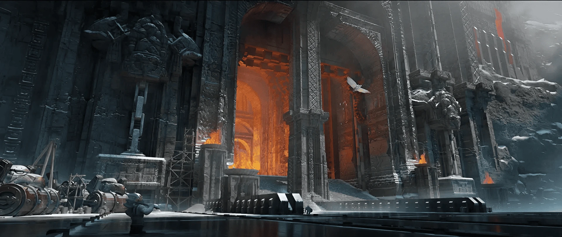 Крепь Молотобойцев — высеченное прямо в скале гордое сооружение, являющееся проходом в Верховье. Длинный мост ведёт внутрь горных бастионов, по бокам которого величественно стекают воды. Возле самих врат часто останавливаются различные торговые повозки или караваны, везущие руды, драгоценности и, само собой, снаряжение для воинов и ремесленников. Проход надёжно защищён встроенными в скалы механизмами.