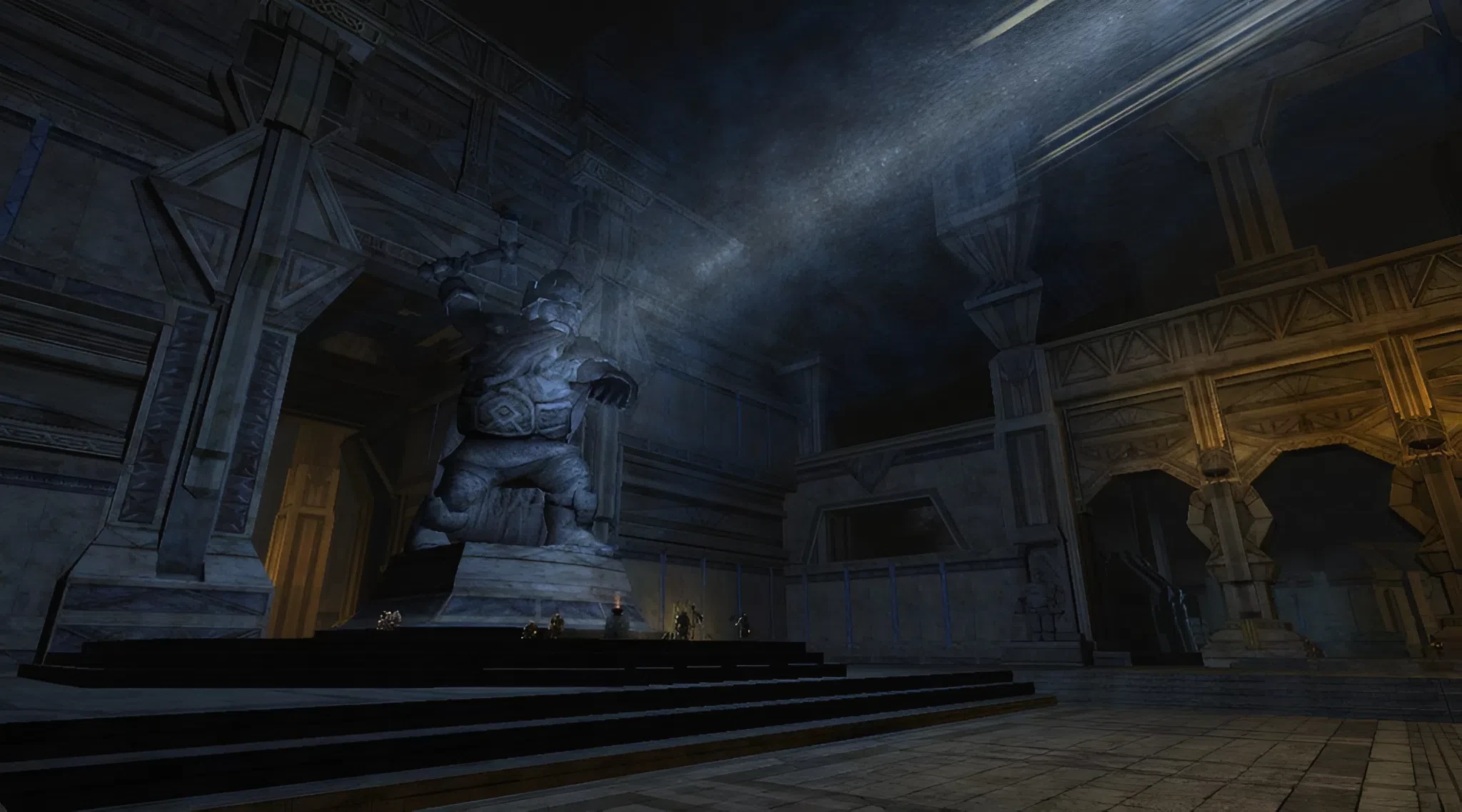 Храм Геома — величественное и высокопочитаемое сооружение Верховья. Как внешне, так и внутренне он обустроен в лучших традициях. В центре огромного зала, освещаемого со всех сторон огнями, подпитываемыми главной кузницей, стоит алтарь для подношений и статуя самого божества в обличии дварфа-прародителя. Здесь каждый желающий может помолиться, чтобы выпросить исцеление от недугов и удачу в своих делах.
